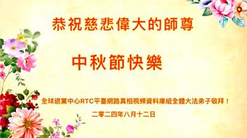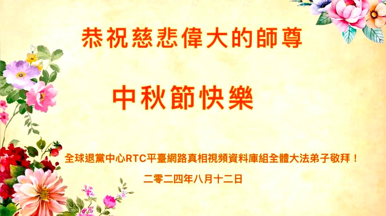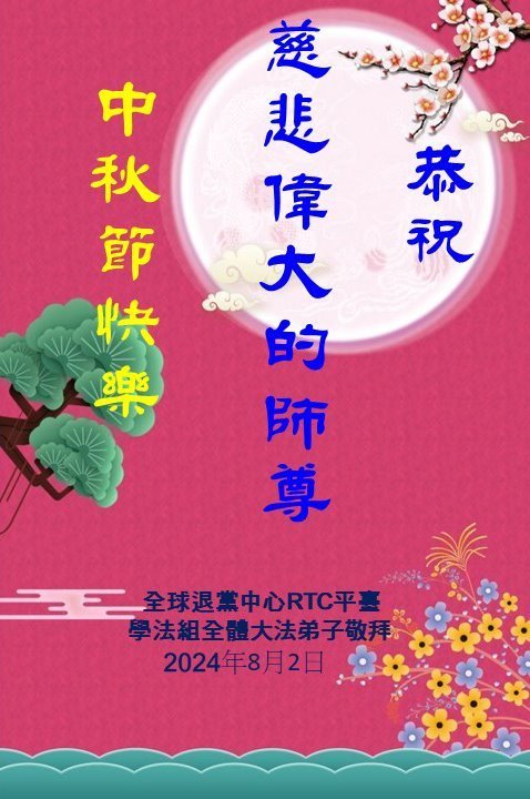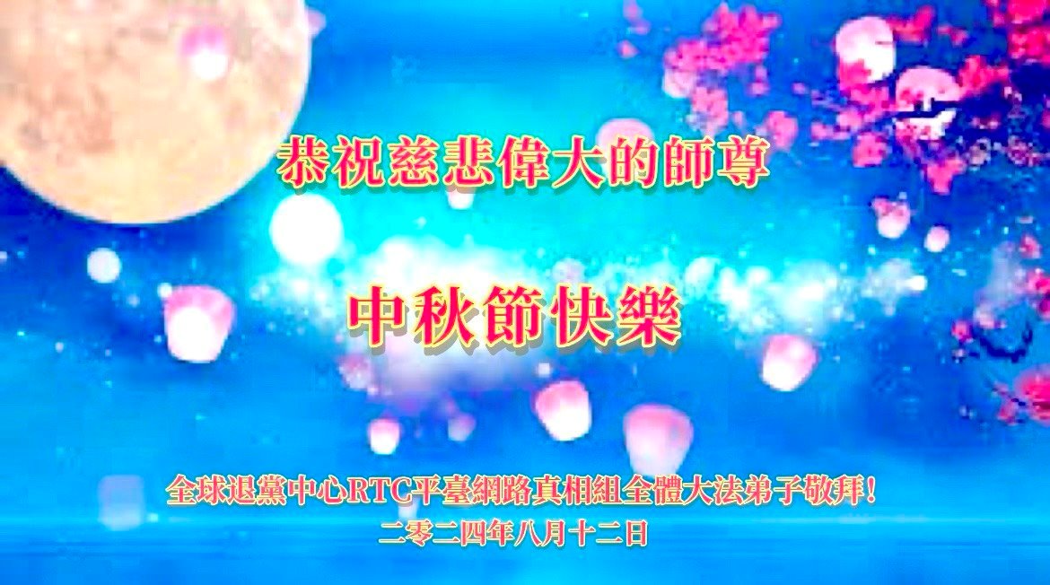 【明慧网二零二四年九月十六日】 全球.退:党!中心RTC平台写作组全体大法弟子恭祝慈悲伟大的师尊中秋节快乐!