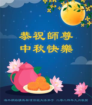 恭祝师尊中秋快乐! 全球营救908特殊案例真相组大法弟子敬上 全球营救平台紧急营救组全体大法弟子恭祝师尊中秋快乐!