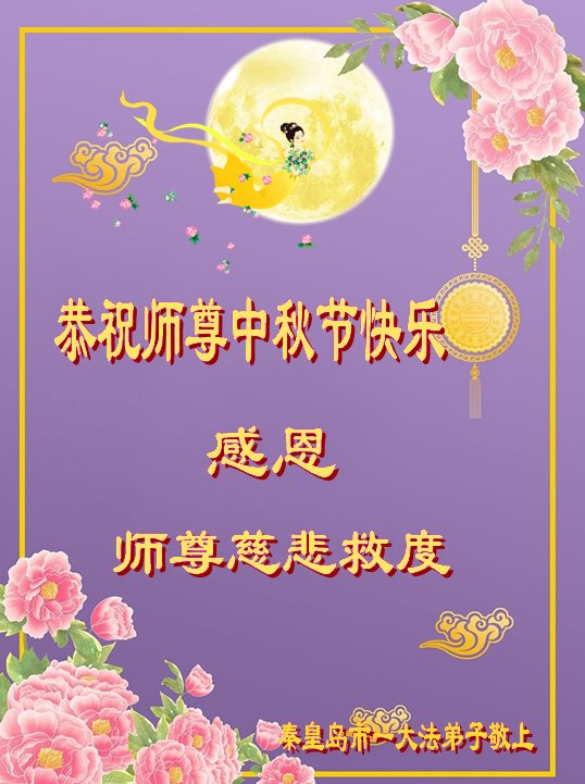 恭祝师尊中秋节快乐! 河北省秦皇岛市青龙县一对老年夫妇大法弟子及全家敬上 河北省秦皇岛市一学法小组大法弟子恭祝师尊中秋节快乐!