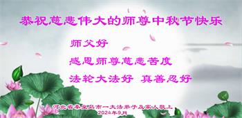 中秋节即将到来,衷心恭祝慈悲伟大的师父中秋节快乐!师父您好!感恩师父的慈悲保护!师父谢谢您! 河北秦皇岛市一家三口大法弟子敬上 二零二四年九月十日