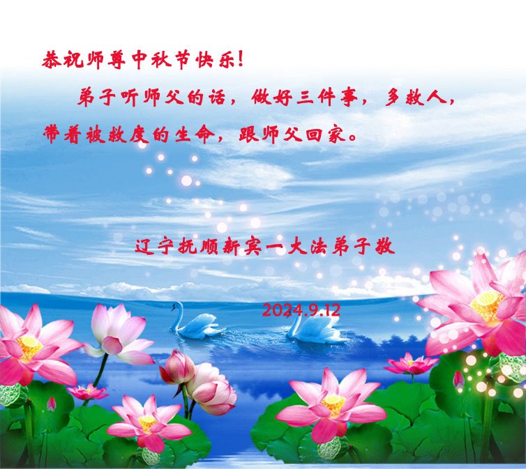 【明慧网二零二四年九月十七日】 辽宁抚顺新宾一大法弟子恭祝师尊中秋节快乐!师尊您辛苦了!