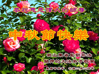 被山东省监狱非法关押的大法弟子恭祝慈悲伟大的师尊中秋节快乐!