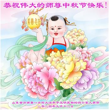 恭祝慈悲伟大的师尊中秋佳节快乐! 被非法关押在山东省监狱家属院的大法弟子敬上 吉林省四平市一大法弟子恭祝师父中秋节快乐!