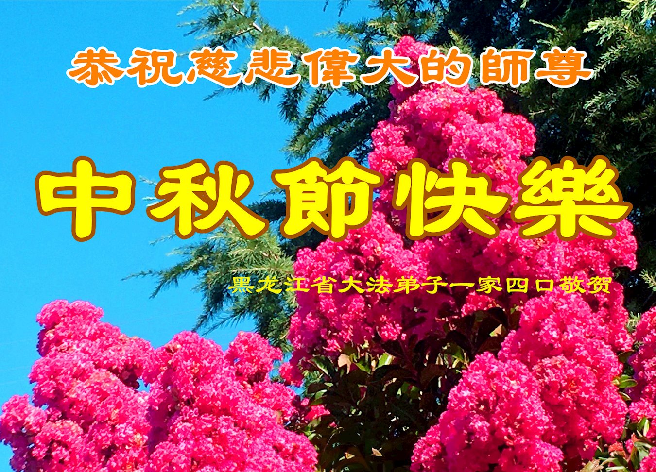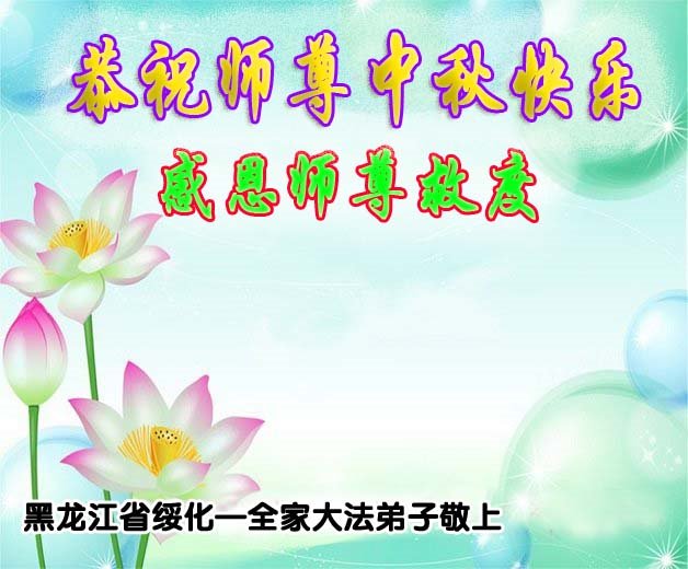 恭祝慈悲伟大的师尊中秋节快乐! 黑龙江省大法弟子一家四口敬上 黑龙江省宝泉岭大法弟子二人恭祝慈悲伟大的师尊中秋节快乐!