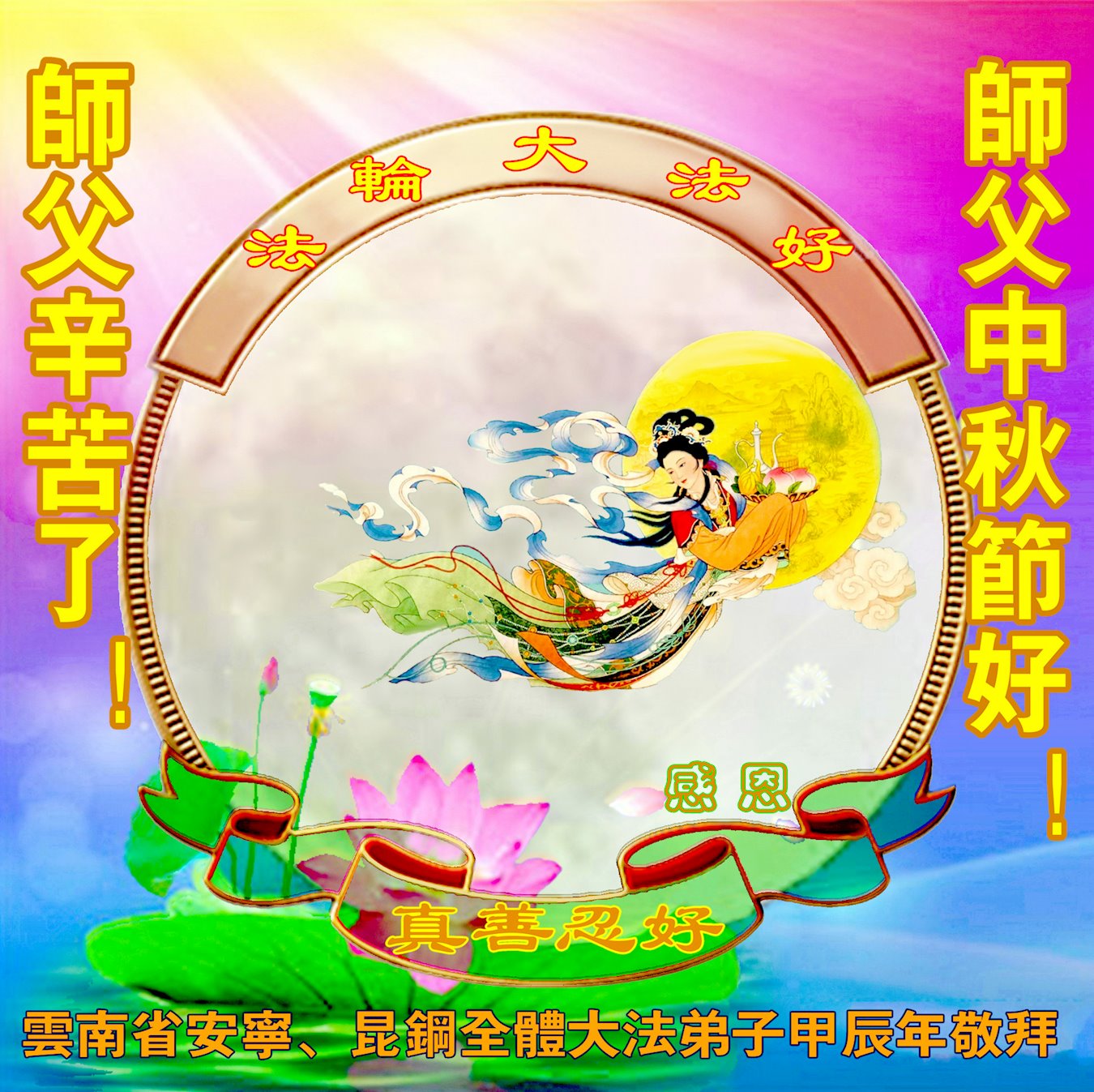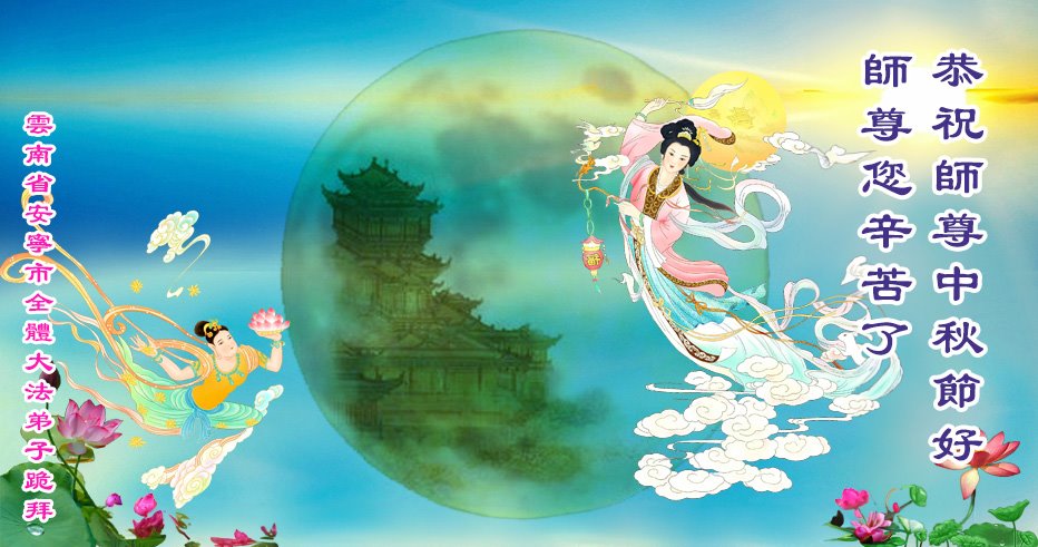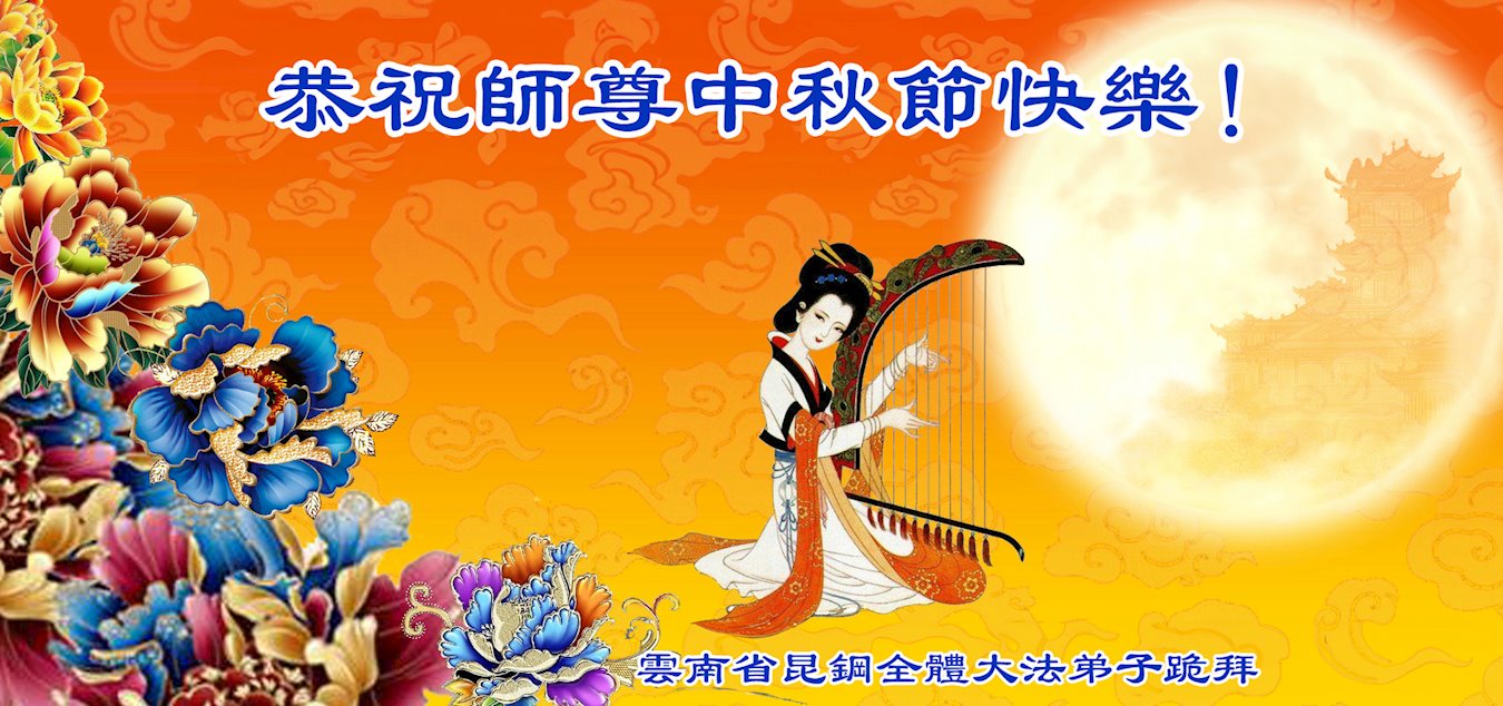 恭祝师尊中秋节快乐! 云南省安宁市全体大法弟子敬上 云南省昆钢全体大法弟子恭祝师父中秋节好!