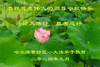 师尊您好!弟子们想念师尊。唯有多学法,向内找,做好三件事,兑现誓约。 哈尔滨一学法小组大法弟子敬上 黑龙江省哈尔滨市香坊区大法弟子恭祝师尊中秋快乐!
