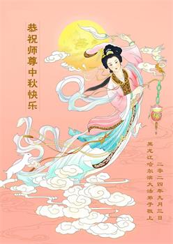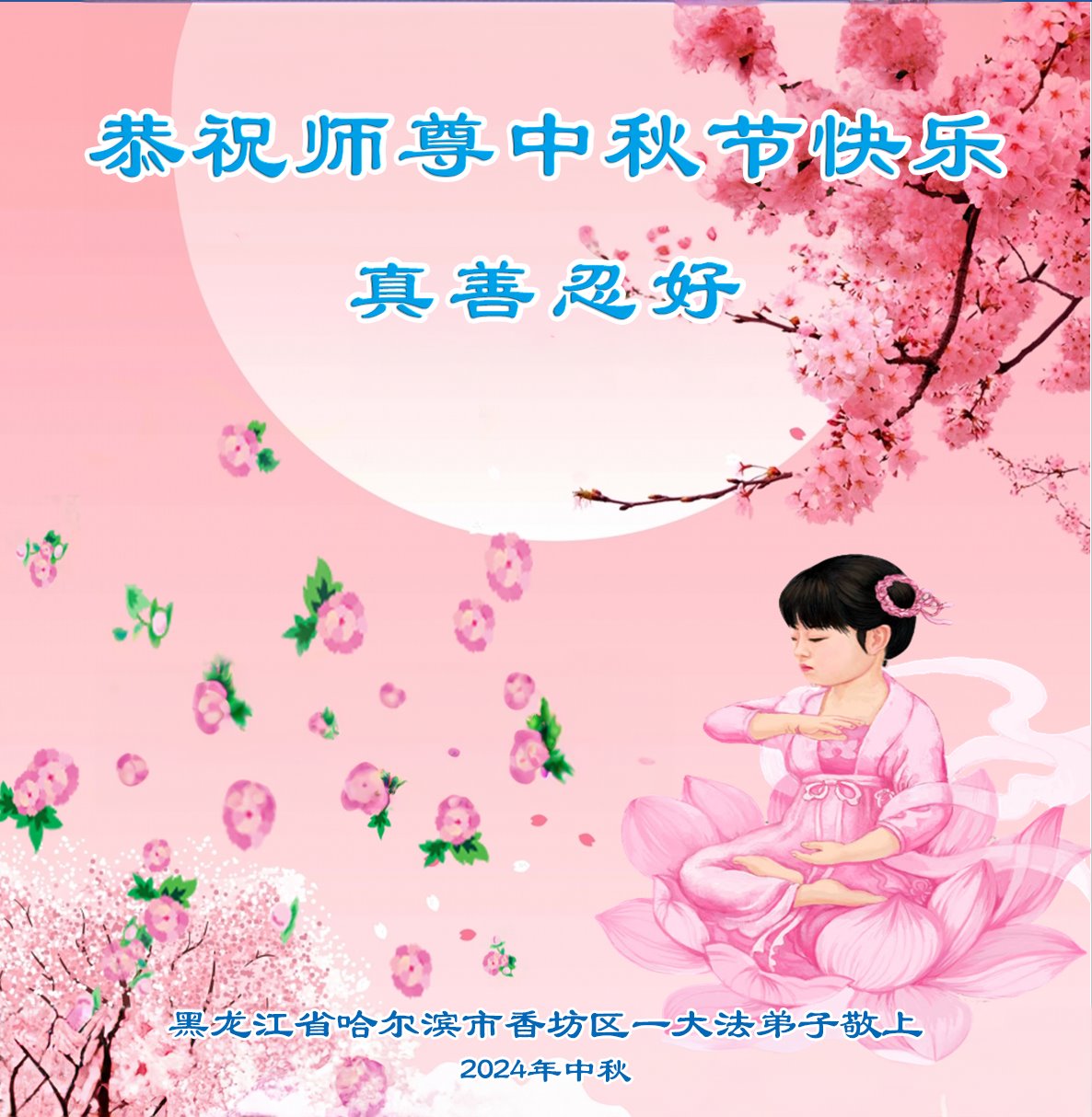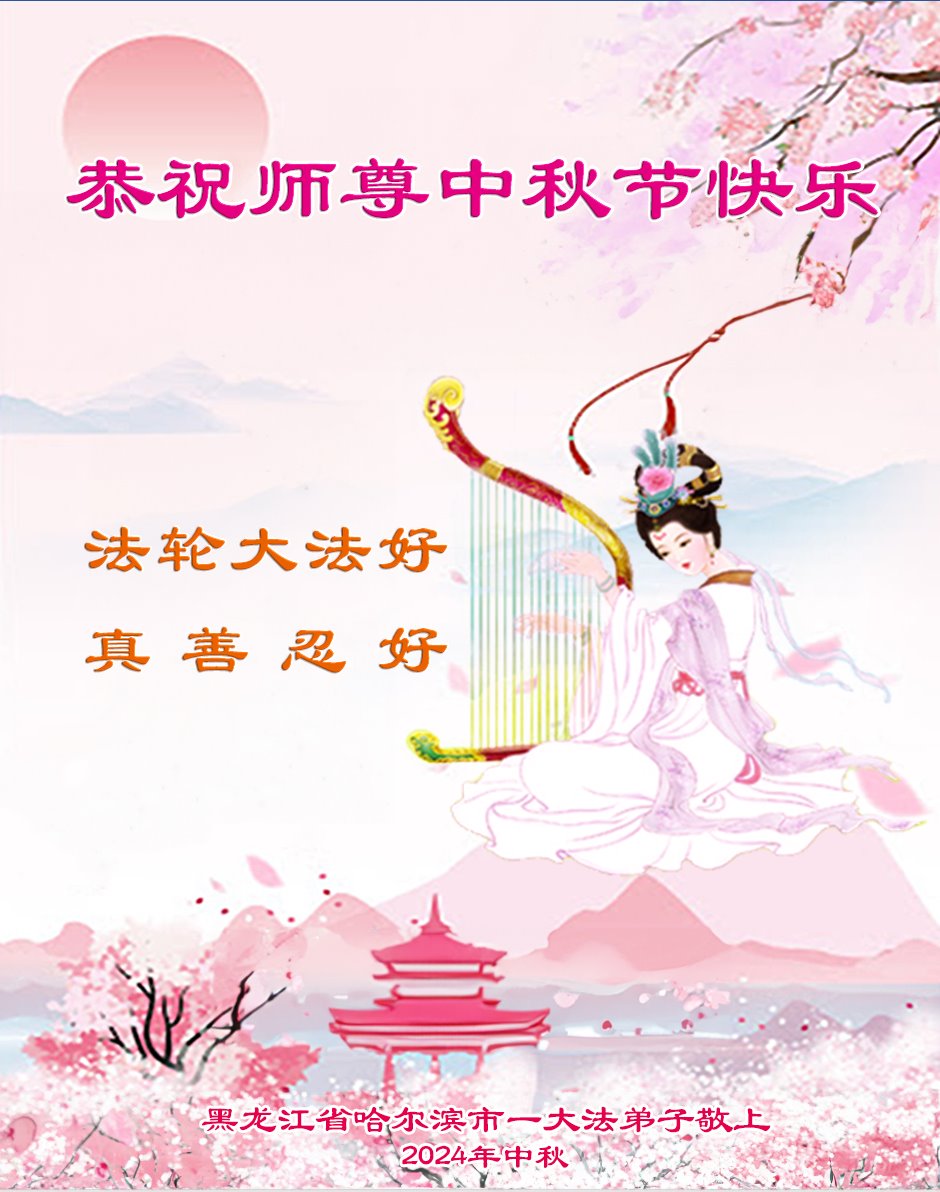 【明慧网二零二四年九月十七日】 黑龙江省哈尔滨香坊区一大法弟子恭祝慈悲伟大的师尊中秋快乐!