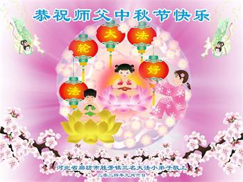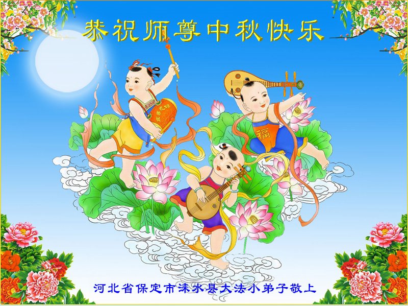恭祝师父中秋节快乐! 山东省青岛市两位大法小弟子敬上 河北省廊坊市胜芳镇三名大法小弟子恭祝师父中秋节快乐!