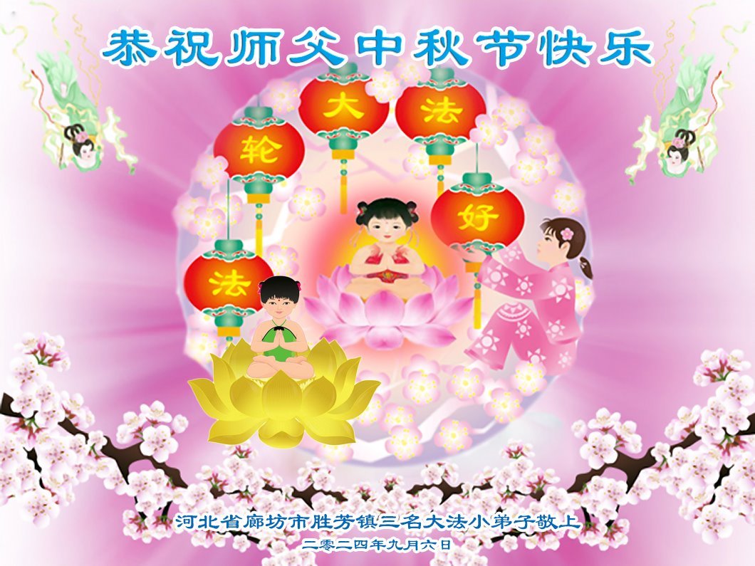恭祝师尊中秋快乐! 河北省石家庄长安区一大法小弟子敬上 天津市河西区大法弟子与大法小弟子携家人恭祝师父中秋节快乐!