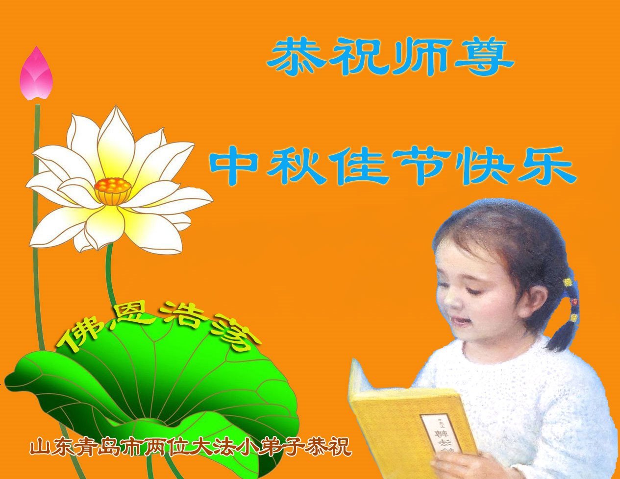 恭祝慈悲伟大的师尊中秋快乐! 山东省东营市大法小弟子敬上 山东省青岛市两位大法小弟子恭祝师父中秋节快乐!