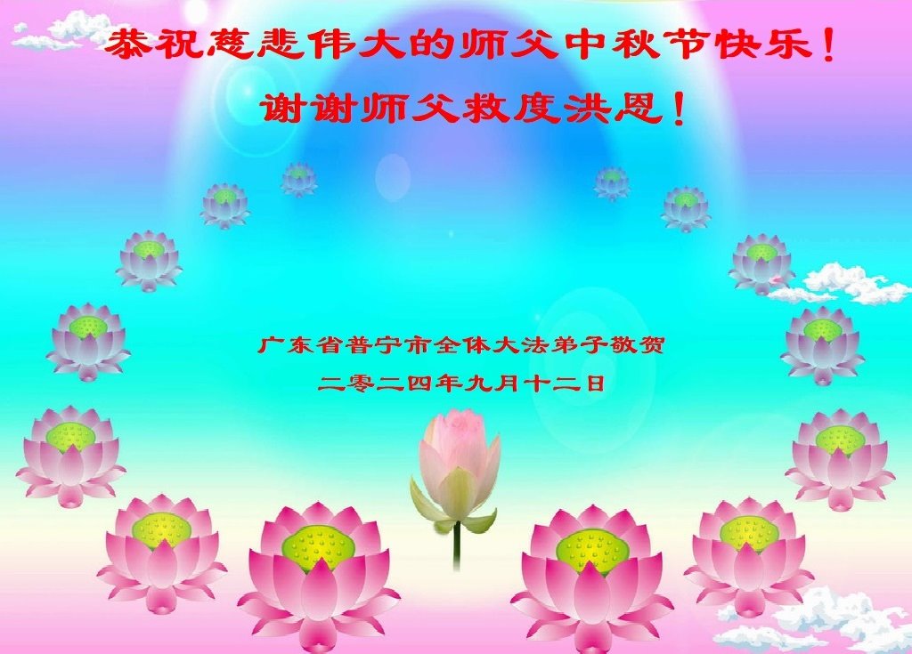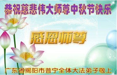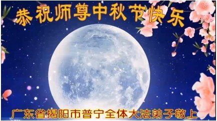 广东省揭阳普宁市全体大法弟子恭祝慈悲伟大的师尊中秋节快乐!