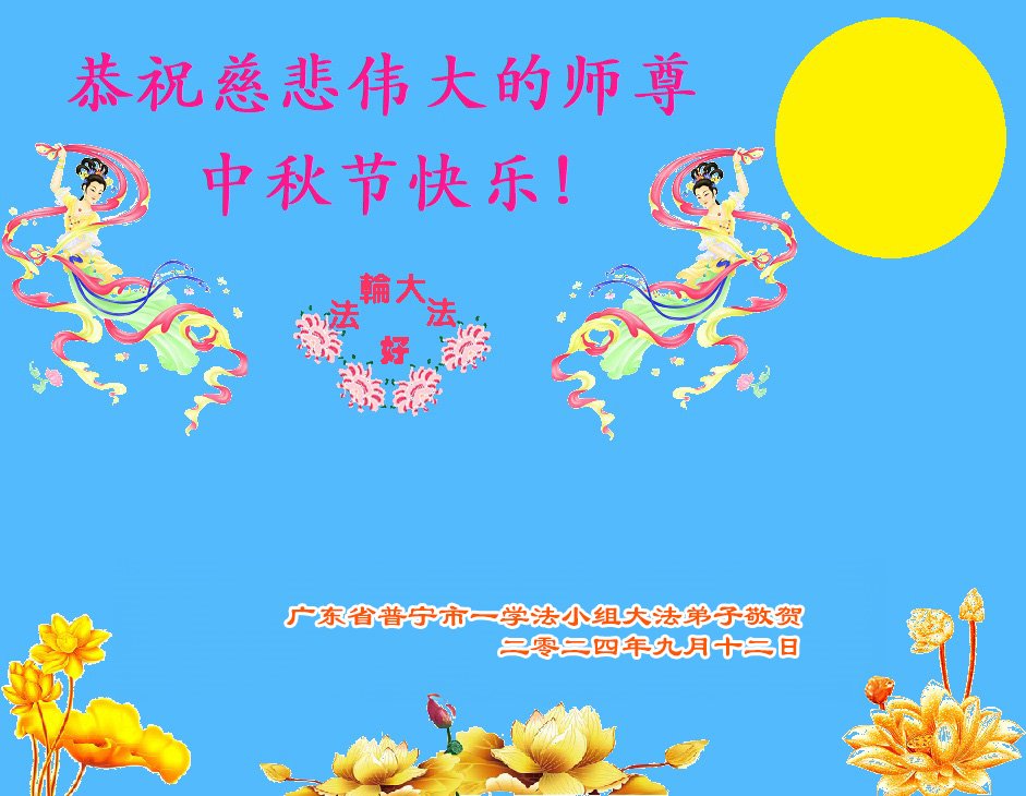 恭祝师父中秋快乐! 广东省汕头市金平区西区三个家庭大法弟子敬上 广东省揭阳市两名大法弟子恭祝慈悲伟大的师父中秋节快乐!