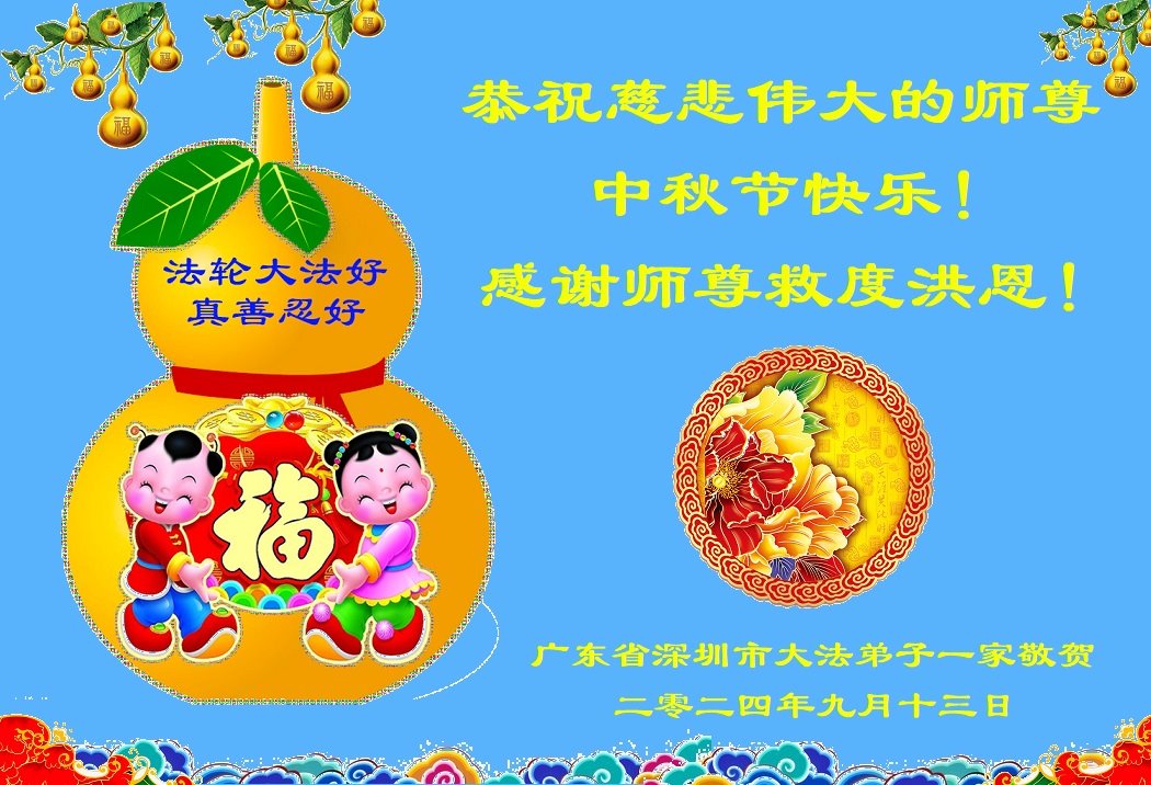 深圳市大法弟子携全家恭祝慈悲伟大的师尊中秋节快乐!