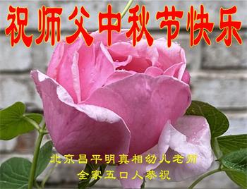 感恩师尊的慈悲救度!谢谢师父!盼师尊早日回到家乡! 北京昌平明真相幼儿教师全家五口人恭祝师父中秋节快乐!