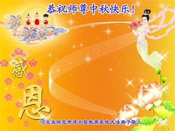 恭祝慈悲伟大的师尊中秋佳节快乐! 山东省蓬莱市教育界大法弟子敬上 河北保定市一学法小学组恭祝师尊中秋节快乐!