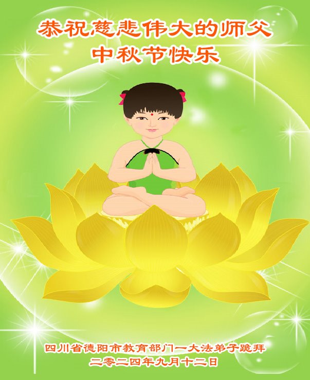 恭祝慈悲伟大的师尊中秋节快乐!感谢师尊救度洪恩!师尊您辛苦了!弟子谨遵师尊教导,做好三件事! 广东省教育系统大法弟子敬上 四川省德阳市教育部门一大法弟子恭祝慈悲伟大的师尊中秋节快乐!