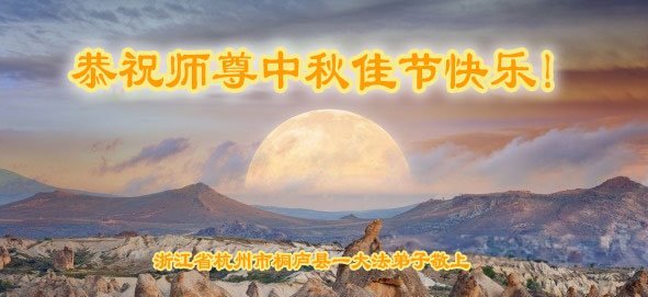 感恩师尊的慈悲救度!弟子要在有限的时间精進实修,学好法,多学法,多救人,跟师尊回家。 浙江省杭州市一学法小组大法弟子恭祝师尊中秋节快乐!