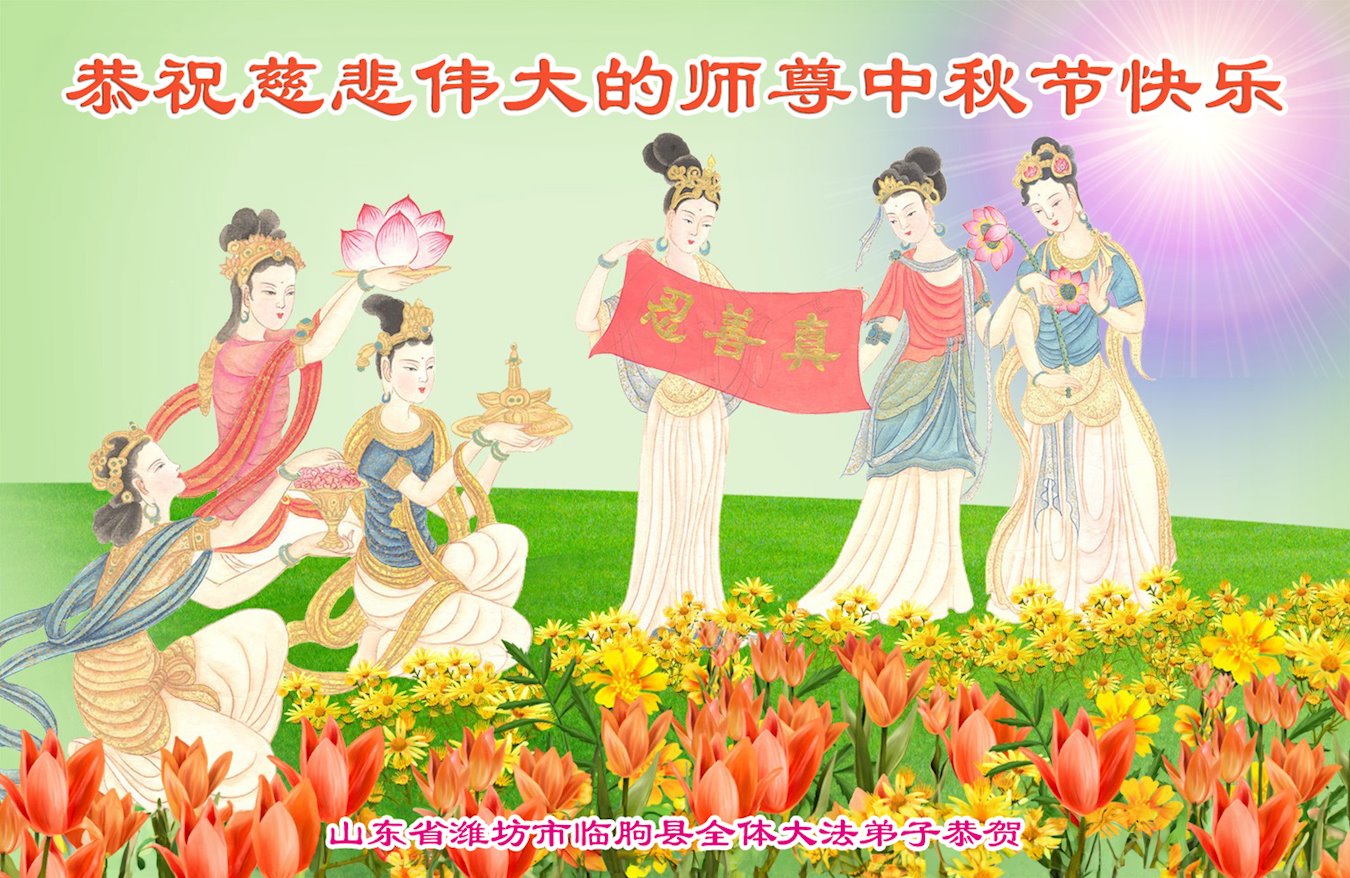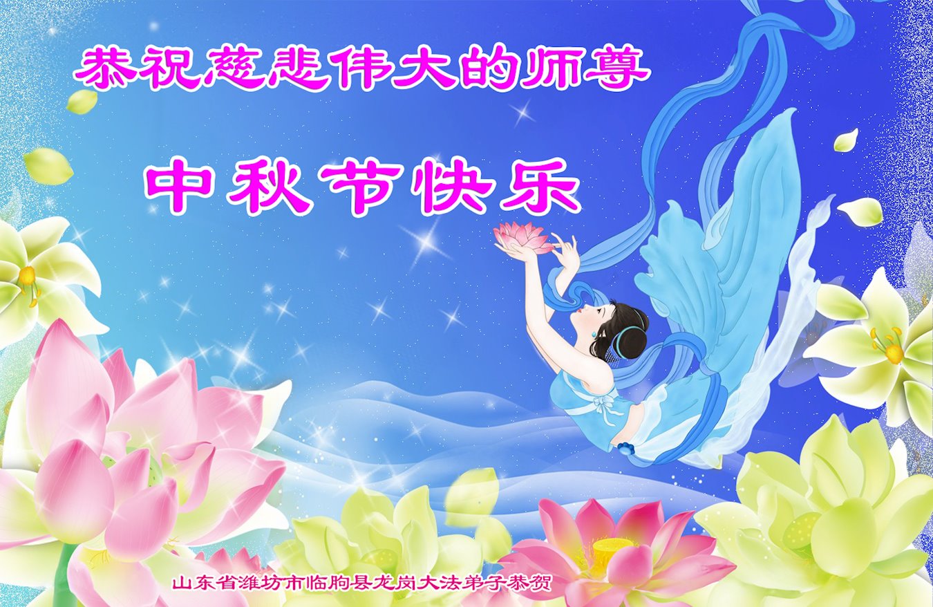恭祝慈悲伟大的师尊中秋节快乐! 山东省潍坊市临朐县全体大法弟子敬上 山东省潍坊市临朐县五井大法弟子恭祝慈悲伟大的师尊中秋节快乐!