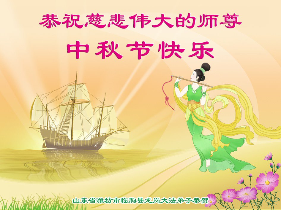 恭祝慈悲伟大的师尊中秋节快乐! 山东省潍坊市临朐县城区大法弟子敬上 山东省潍坊市临朐县嵩山一夫妻大法弟子恭祝慈悲伟大的师尊中秋节快乐!