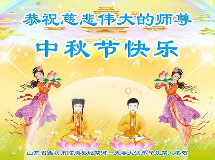 恭祝慈悲伟大的师尊中秋节快乐! 山东省潍坊市临朐县殷家河一夫妻大法弟子及家人敬上 山东省潍坊市临朐县全体大法弟子恭祝慈悲伟大的师尊中秋节快乐!