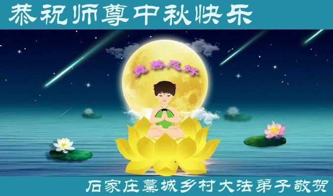 感恩师父的慈悲苦度,弟子今后要修好自己,做好三件事,请师父放心。谢谢师父! 河北省石家庄市藁城区一乡村大法弟子恭祝师父中秋节快乐!