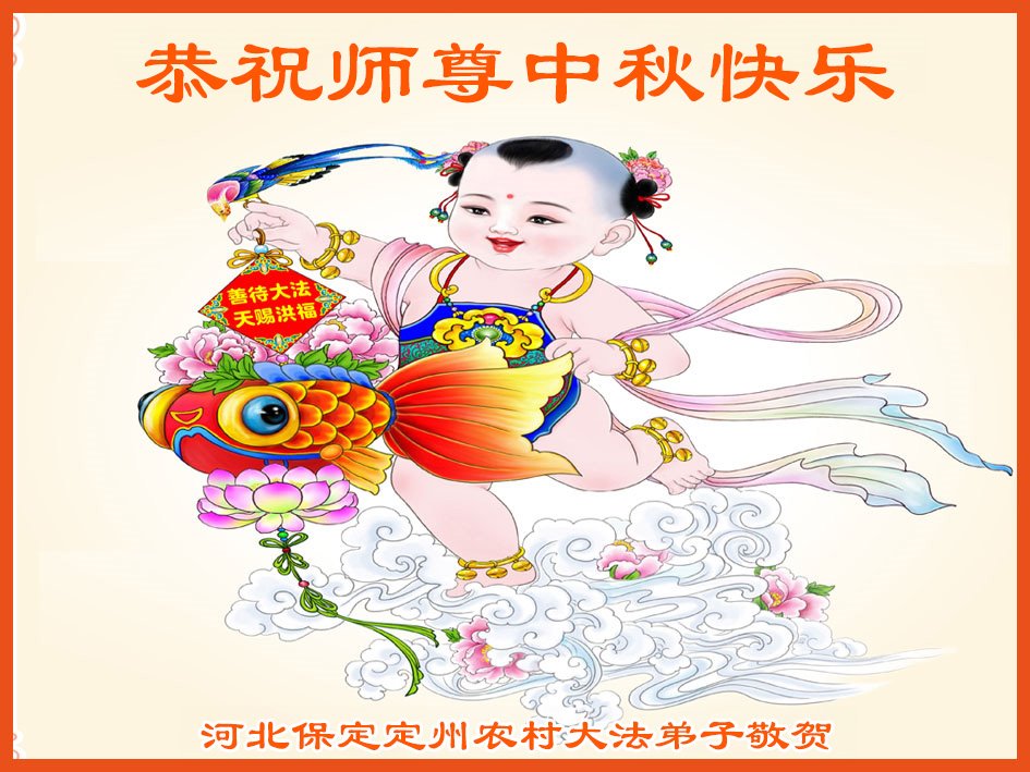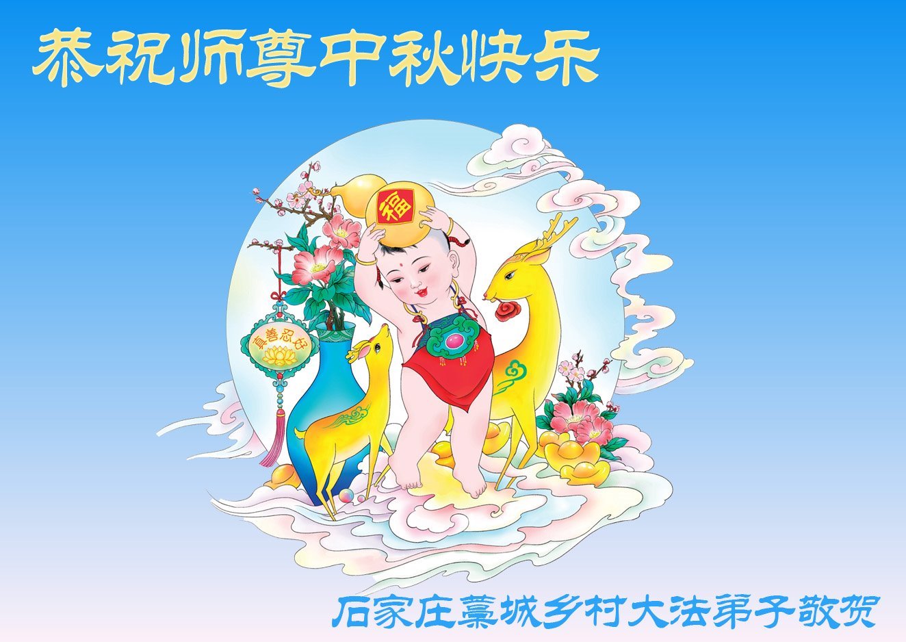 恭祝师尊中秋节快乐! 每逢佳节倍思亲 唯有精進报师恩 感恩师尊语难表 祝愿师尊佳节好 到农村讲真相中,世人问师父好! 河北辛集市大法弟子敬上 二零二四年九月十日 河北省石家庄市藁城区一乡村大法弟子恭祝师父中秋节快乐!