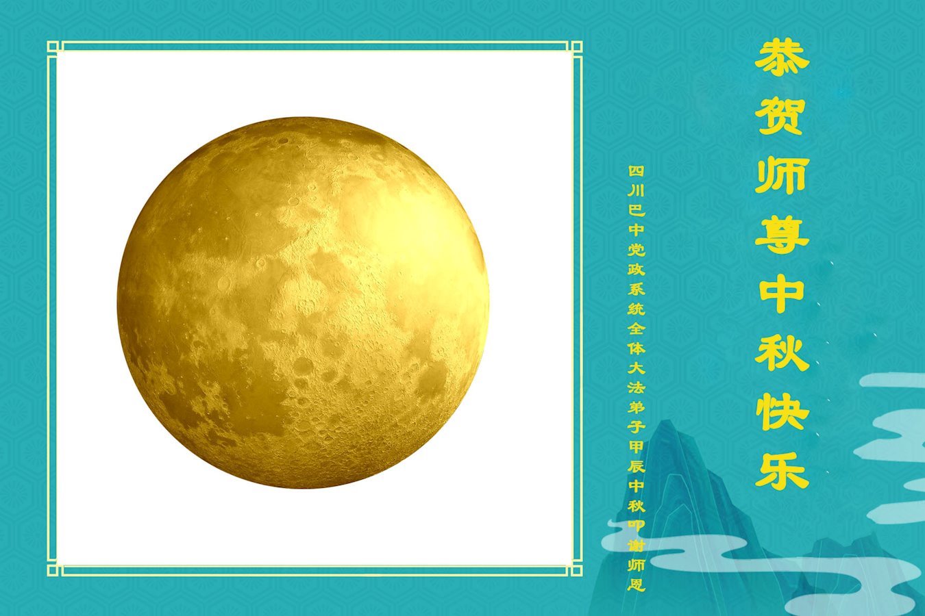 师尊您辛苦了!您为芸芸众生付出了无尽的艰辛,您无量的慈悲驱散了阴霾,照亮了寰宇,在劫难中得救的众生亏欠您太多,对师尊只有无尽的感恩!无尽的感恩! 值此甲辰中秋之际,我们巴中市党政系统全体大法弟子恭祝慈悲伟大的师尊中秋快乐! 弟子叩谢师恩! 黑龙江省税务系统大法弟子及家人恭祝师尊中秋快乐!
