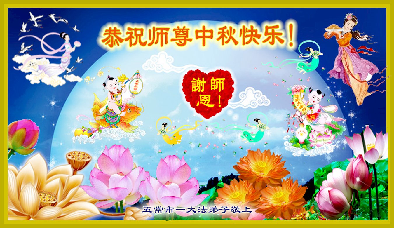 恭祝师尊中秋快乐! 法轮大法好,真善忍好。 黑龙江哈尔滨大法弟子敬上 黑龙江省哈尔滨市五常市大法弟子一家恭祝师尊中秋快乐!
