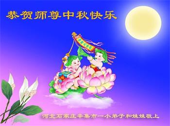 师尊您好!师尊您辛苦了!弟子要做师尊真修弟子,跟师父回家! 黑龙江省金山城母子两位大法弟子携两名大法小弟子敬上 河北省唐山大法弟子恭祝慈悲伟大的师尊中秋节快乐!