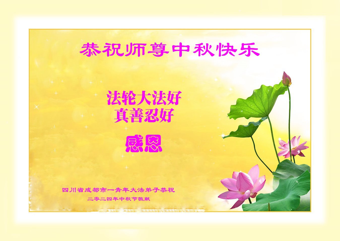 恭祝师尊中秋快乐! 四川省成都市一青年大法弟子敬上 四川省成都市一青年大法弟子恭祝师尊中秋快乐!