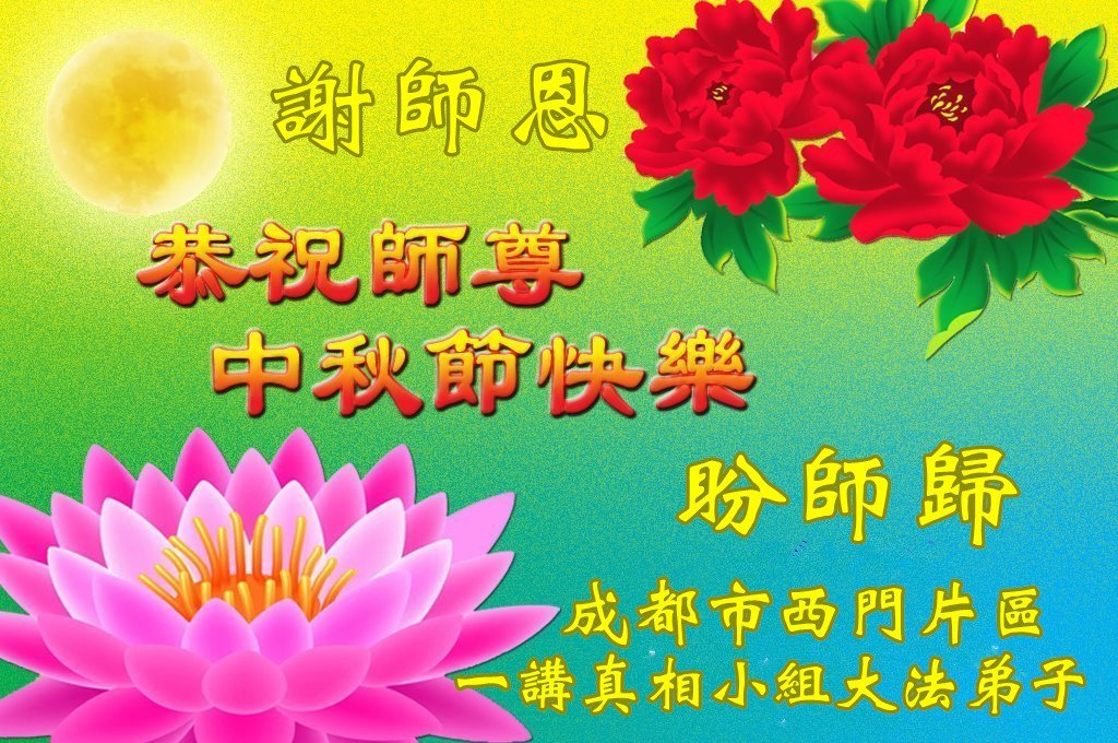 感恩师父慈悲救度!师父辛苦了! 四川省成都西门片区一讲真相小组大法弟子恭祝师尊中秋节快乐!