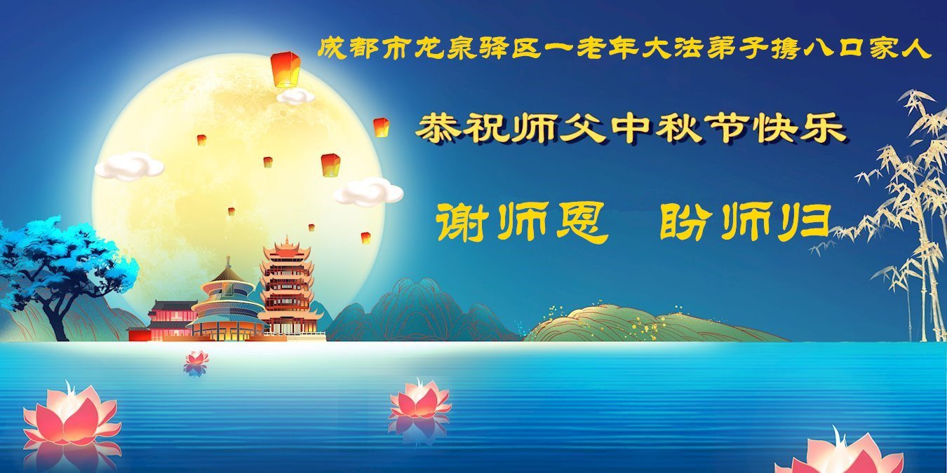 恭祝慈悲伟大的师尊中秋节快乐! 师尊辛苦了!谢谢师尊对弟子和众生的慈悲救度! 四川省成都市一家五口大法弟子及明真相得福报的家人敬上 四川省成都市青白江区老年大法弟子恭祝慈悲伟大的师尊中秋快乐!