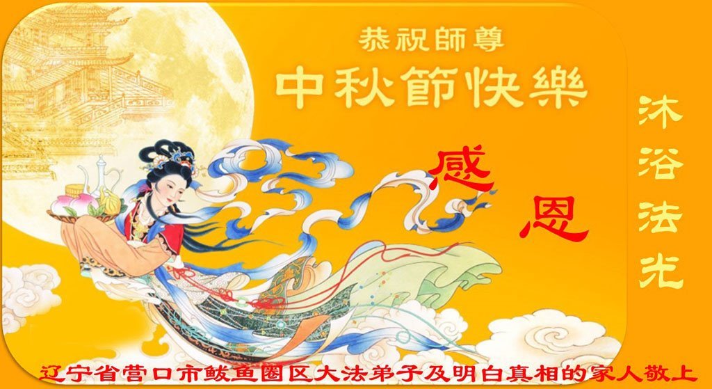 值此中秋佳节之际,我和我的母亲向伟大慈悲的师尊叩首合十问候!感谢师尊的救度之恩!恭祝师父中秋快乐! 辽宁省营口市鲅鱼圈区大法弟子及明白真相的家人恭祝师尊中秋节快乐!