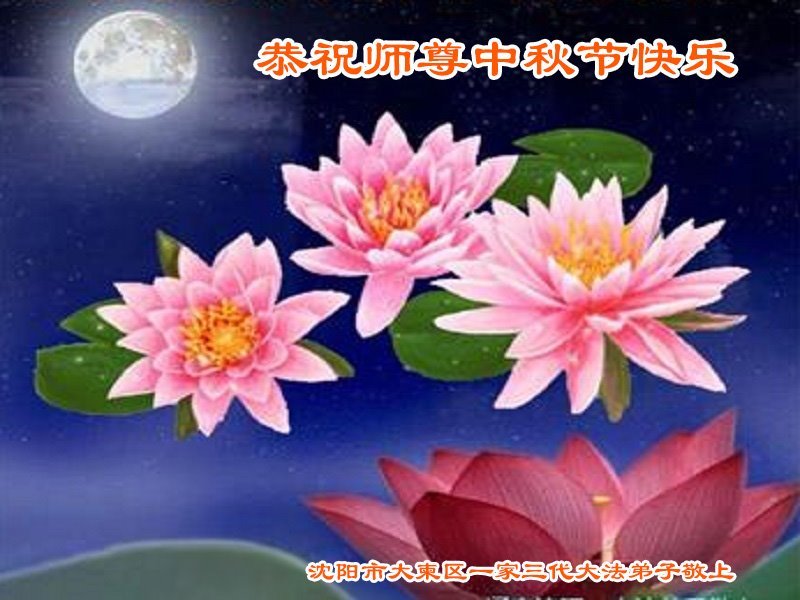 【明慧网二零二四年九月十七日】 辽宁省沈阳市一家三口大法弟子恭祝慈悲伟大的师尊中秋节快乐!