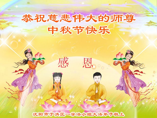 恭祝慈悲伟大的师尊中秋节快乐! 辽宁省沈阳市一家三口大法弟子敬上 辽宁省沈阳市一家三口大法弟子恭祝慈悲伟大的师尊中秋节快乐! 恭祝慈悲伟大的师尊中秋节快乐! 辽宁省沈阳市一家三口大法弟子敬上 辽宁省沈阳浑南一学法小组大法弟子恭祝慈悲伟大的师尊中秋节快乐!