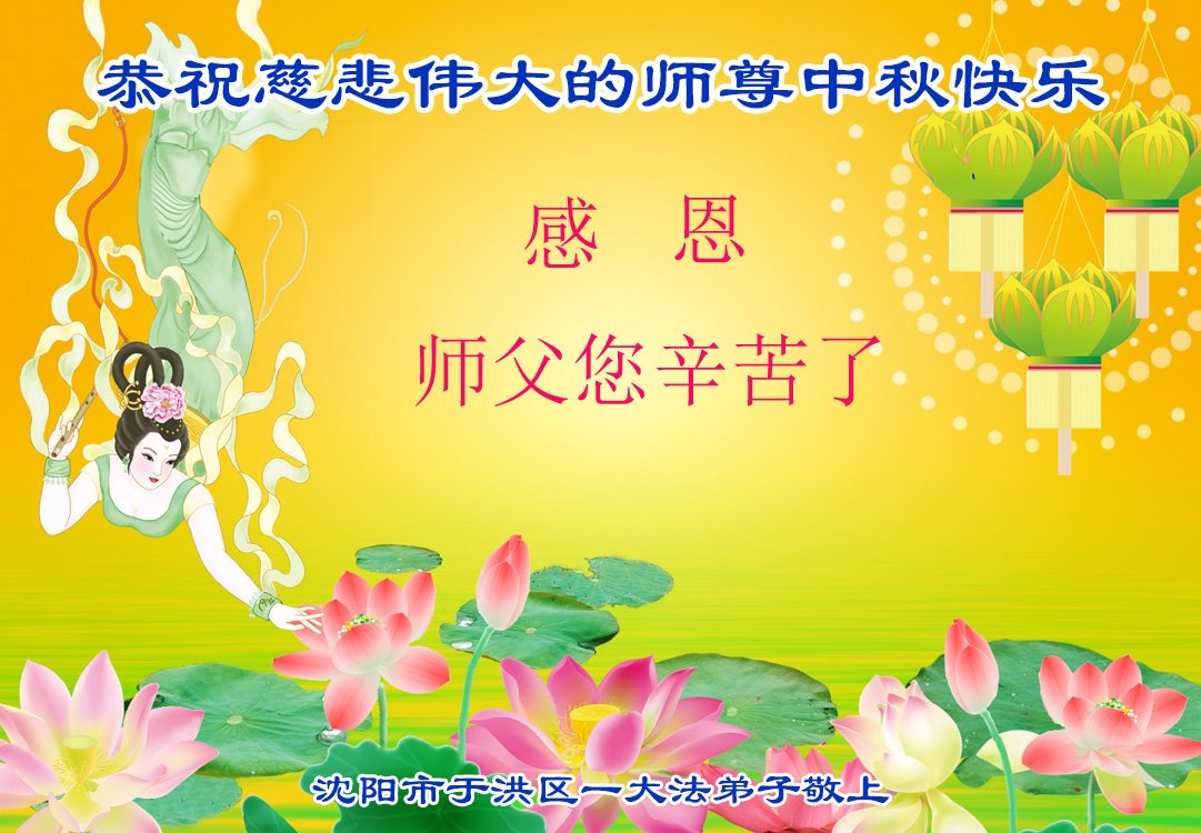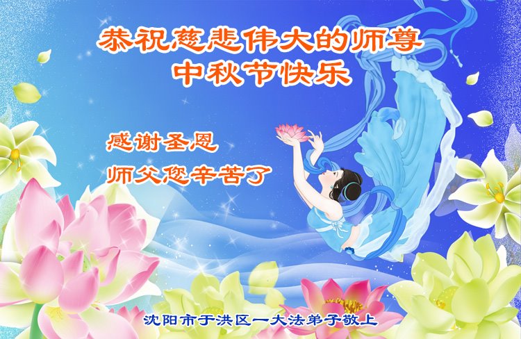 恭祝慈悲伟大的师尊中秋节快乐! 辽宁省沈阳浑南一学法小组大法弟子敬上 辽宁省沈阳市于洪区一学法小组大法弟子恭祝伟大慈悲的师尊中秋节快乐!