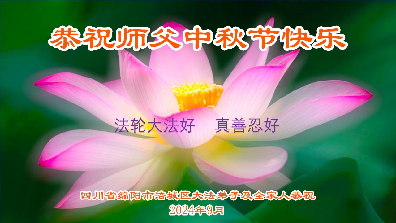 【明慧网二零二四年九月十七日】 四川绵阳市涪城区大法弟子及全家人恭祝师父中秋节快乐!