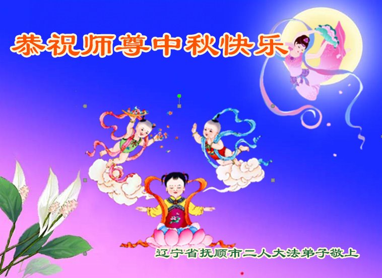 辽宁省抚顺市二名大法弟子恭祝师尊中秋快乐!