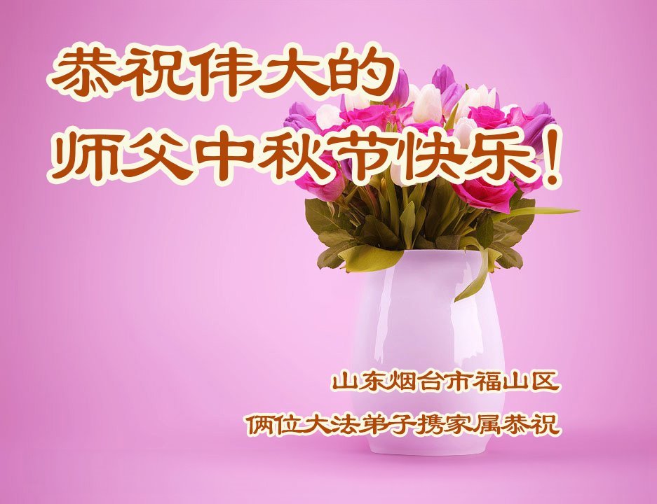 山东省烟台市芝罘区一夫妻大法弟子恭祝慈悲伟大的师父中秋节快乐!