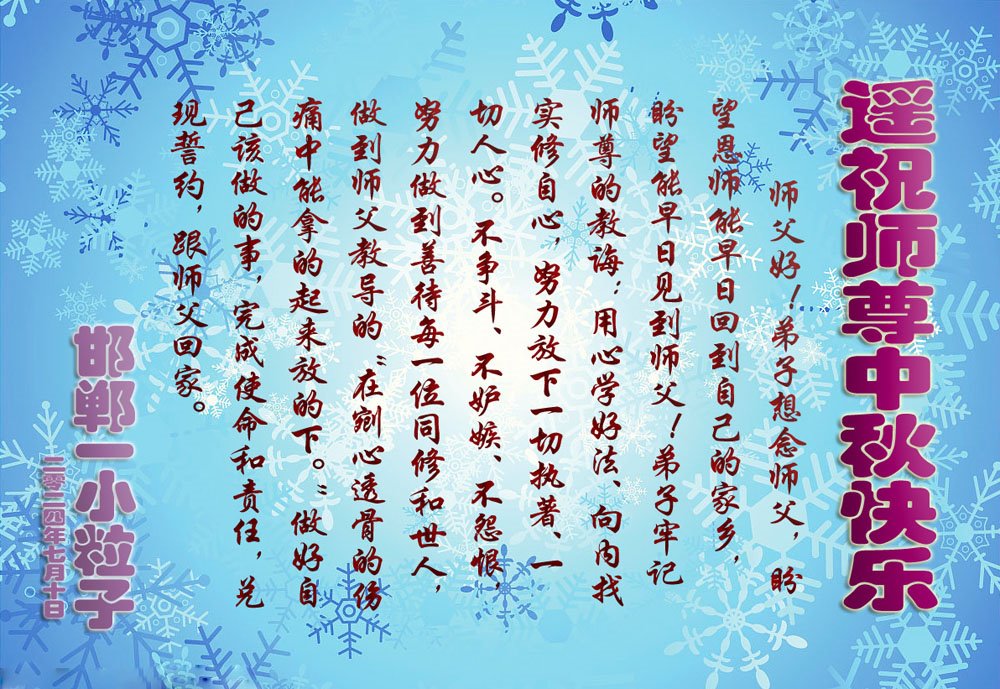 河北邯郸一大法弟子恭祝师尊中秋快乐!