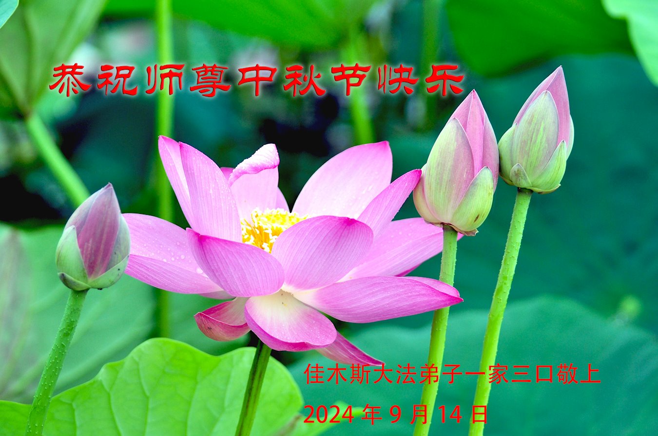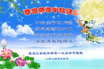 【明慧网二零二四年九月十七日】 黑龙江省佳木斯大法弟子全家恭祝师父中秋节快乐!师父您辛苦了!