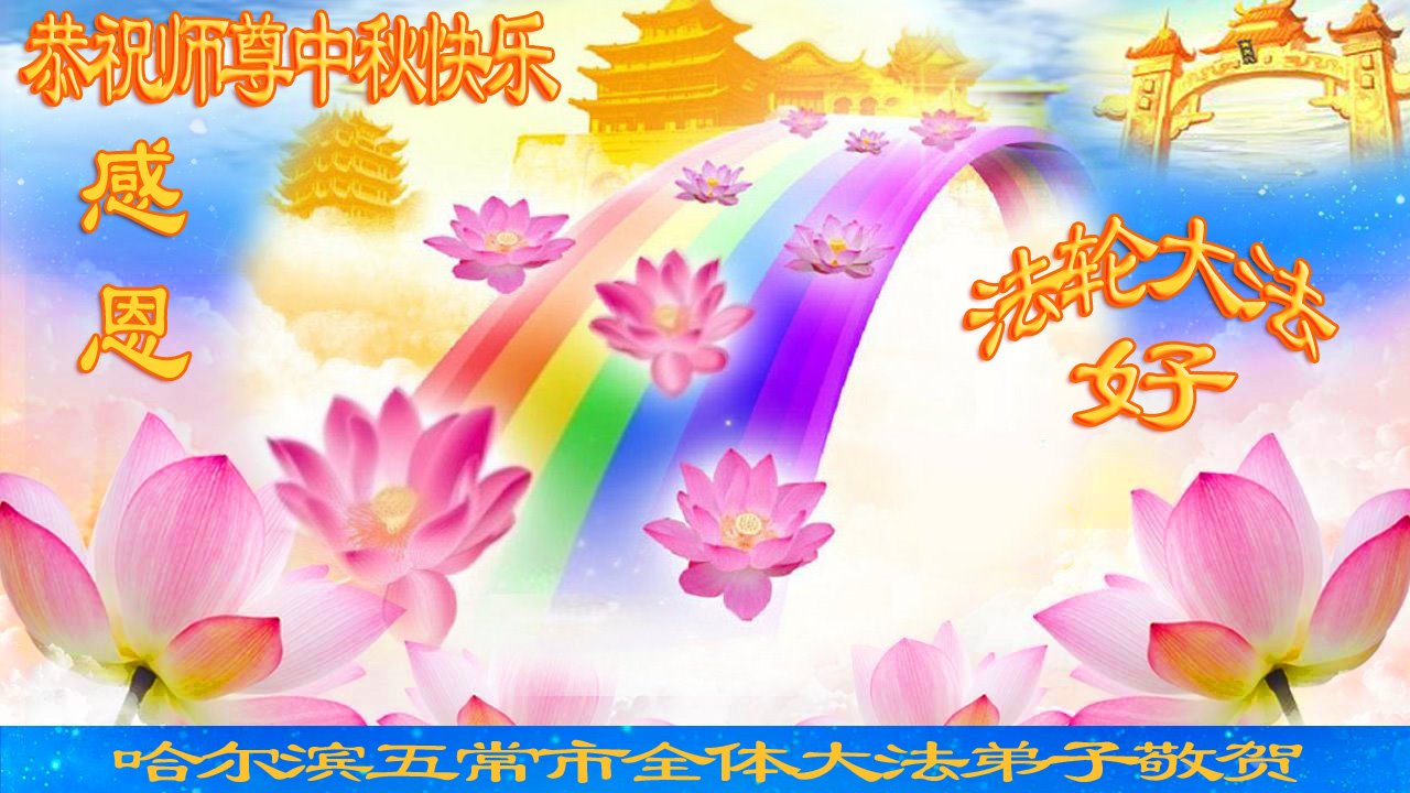 师尊您辛苦了!弟子携家人感恩师尊的慈悲的救度与保护! 黑龙江省哈尔滨市五常市全体大法弟子恭祝慈悲伟大的师父中秋快乐!