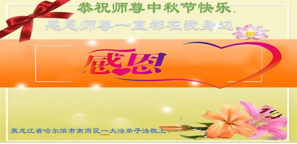 感恩师尊慈悲苦度!我们要精進实修,努力做好三件事,放下人心、人念、人情,让师尊多一些欣慰,少一点操心,坚定不移地走在助师正法的路上,跟随师尊回家。叩拜师尊! 黑龙江省哈尔滨大法弟子恭祝师父中秋节快乐!