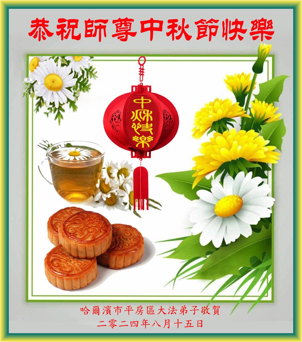 【明慧网二零二四年九月十七日】 黑龙江省哈尔滨市五常市一学法小组大法弟子恭祝慈悲伟大的师父中秋快乐!