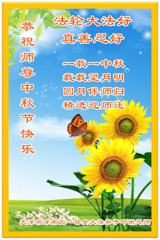 感恩师尊慈悲苦度!弟子一定精進实修,做好三件事,随师回家。 天津大法弟子恭祝师父中秋好!