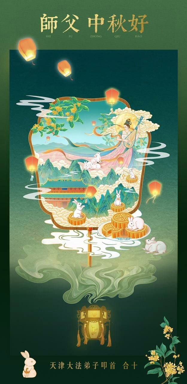 恭祝师父中秋快乐! 天津市河西区大法弟子敬上 2024年9月 天津市一大法弟子恭祝慈悲伟大的师尊中秋节快乐!