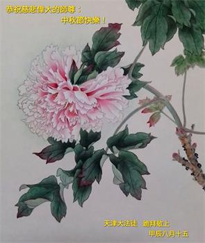 万语千言无法表达弟子感恩之情,唯有不断精進,救度更多众生,完成助师正法的使命。 天津大法弟子恭祝师父中秋好!