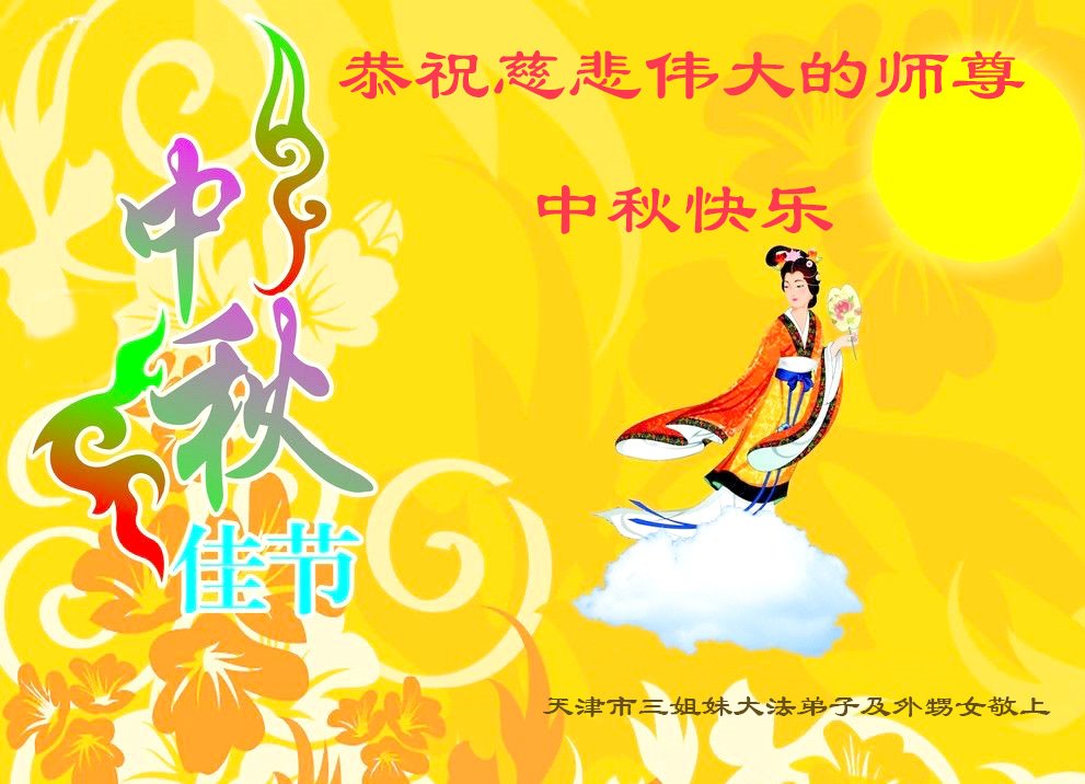 恭祝慈悲伟大的师尊中秋快乐! 天津市三姐妹大法弟子及外甥女敬上 天津市一大法弟子携全家恭祝师尊中秋快乐!