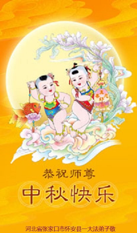 我们一定多修心性,尽快提升,让师父少一份操劳,多一份欣慰。 河北张家口一大法弟子姐妹恭祝师尊中秋快乐!