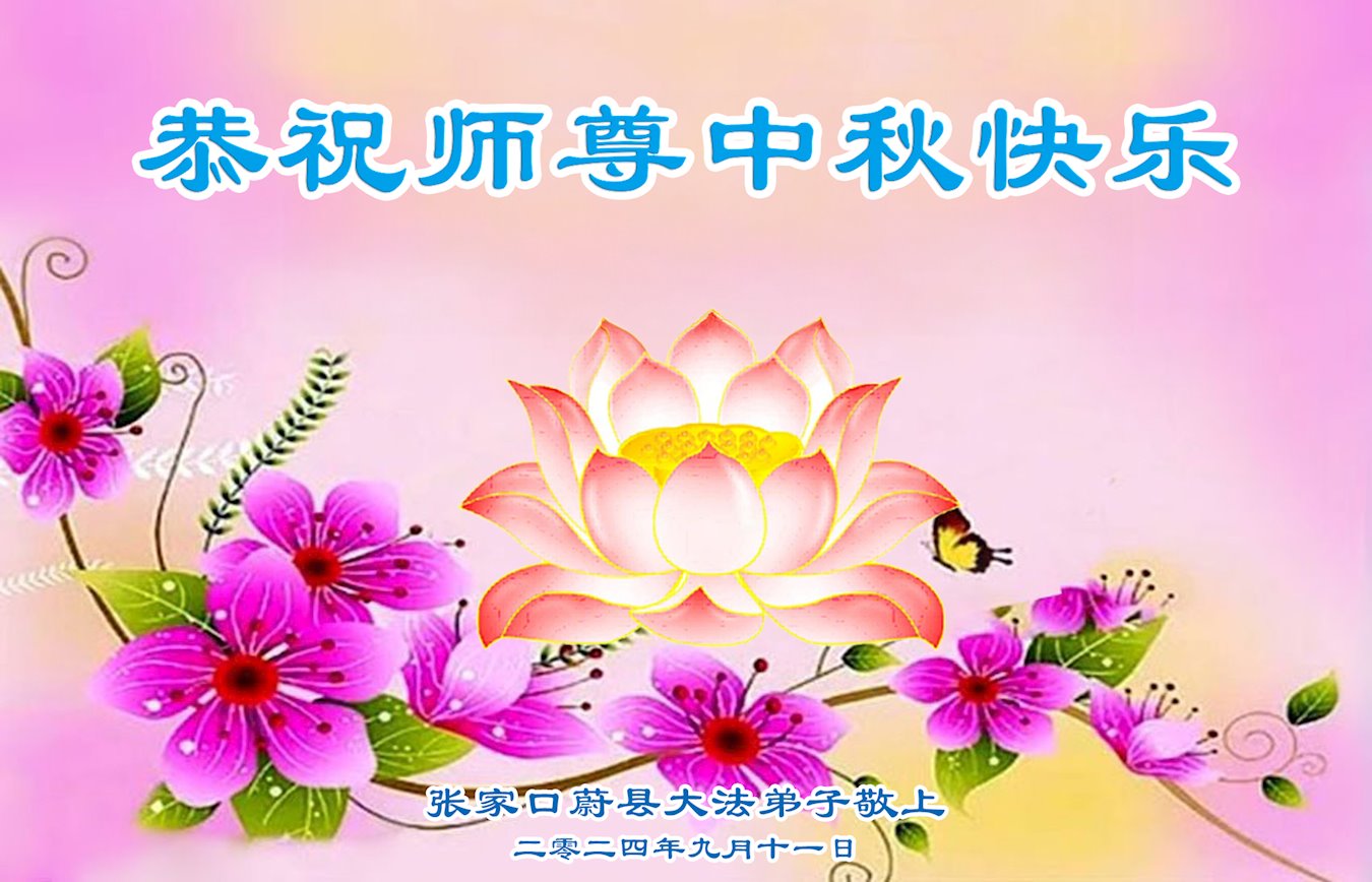 师父您好!师父您辛苦了! 河北省张家口一大法弟子敬上 二零二四年九月十四日 河北省张家口大一法弟子恭祝师尊中秋节快乐!
